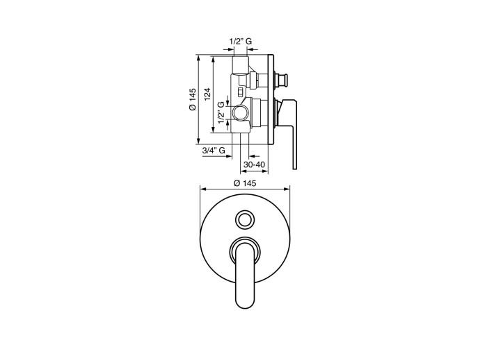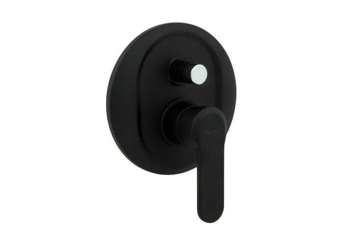Модель виготовлена з латуні з покриттям матового чорного і хромового кольорів, кріпиться на один отвір за допомогою з’єднання під діаметр 1/2″, має керамічний картридж, діаметр декоративної панелі 14.5 см і обладнується перемикачем ванна/душ.