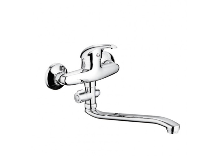 Змішувач для ванни Frap F2102-B обладнаний довгим зігнутим гусаком. Така конструкція дозволяє застосовувати виріб для поруч розташованого умивальника. Спарене розташування економить простір в приміщення, спрощує розведення труб.