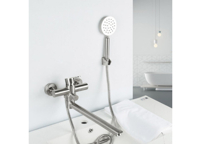 Змішувач для ванни Frap F22801 нержавіюча сталь має округлу форму з мінімальною кількістю кутів. Його довгий круглий виливши зі злегка спрямованим вперед аератором ідеальний для спареного застосування з умивальником. Монтаж такого виробу в приміщенні дає можливість значно економити на просторі і розводці труб.