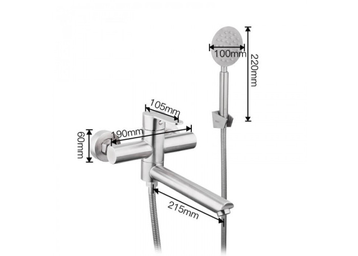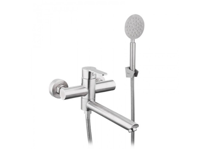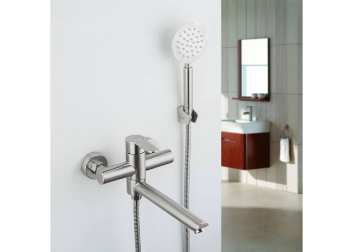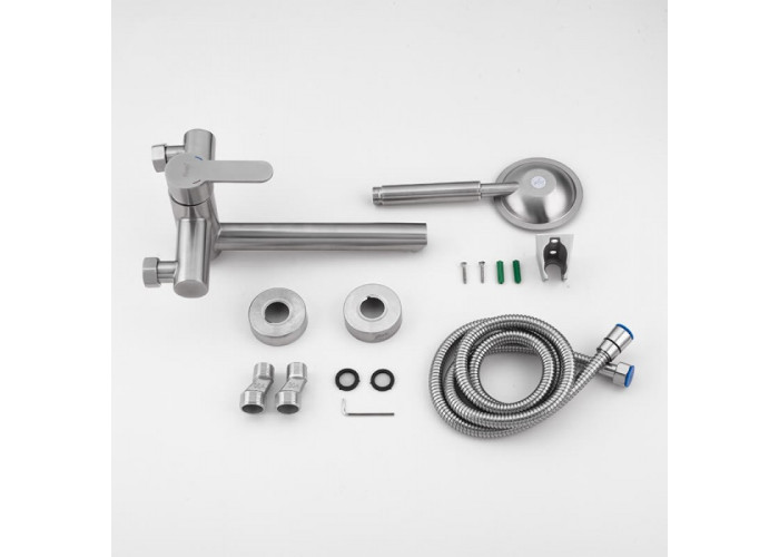 Змішувач для ванни Frap F32801 нержавіюча сталь не може застосовуватися для раковини. Він занадто короткий, тому не може виконувати додаткові функції. Разом з ним поставляється лійка з нержавіючої сталі і душовою шланг. Вони мають стандартне різьблення, тому можуть з'єднуватися з іншими аналогічними пристроями або бути ними заміненими.