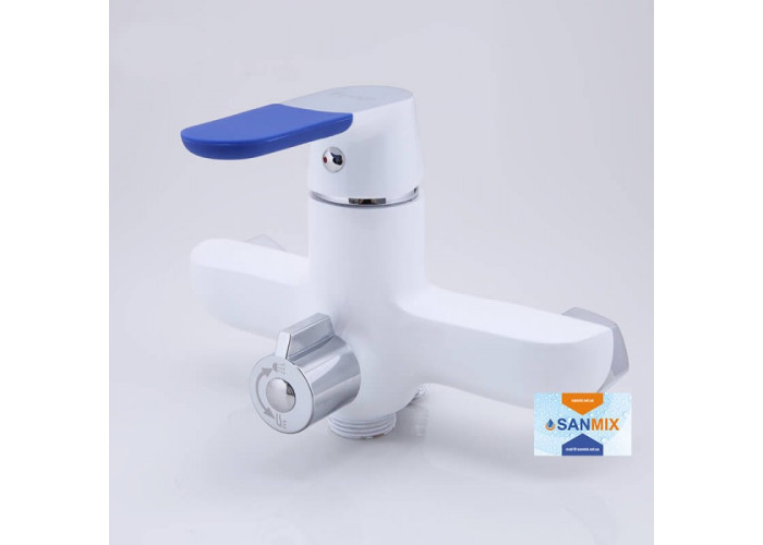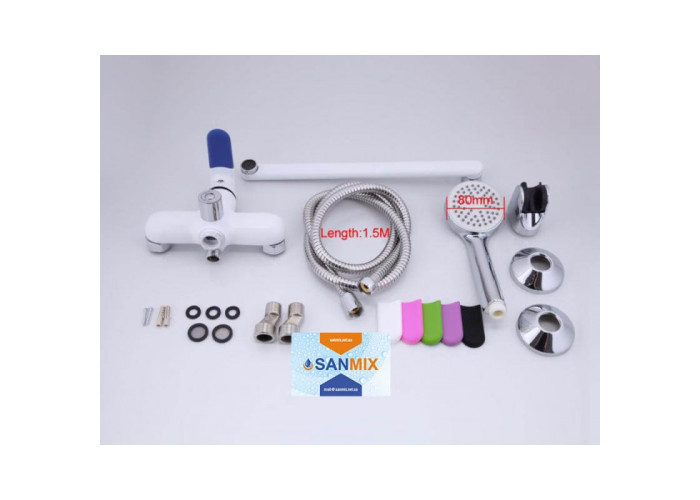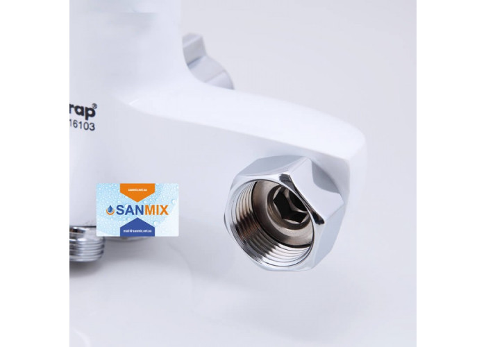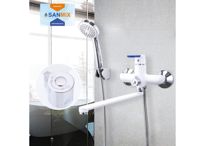 Змішувач для ванни Frap H34 F2234 латунний має в комплекті декоративні накладки різних кольорів, які можна змінювати на свій вибір. До того ж вони перешкоджають зісковзуванню руки з держателя. Так само варто відзначити, що його вбудований в корпус дивертор повертається на 180 градусів, тому в кожному з робочих режимів він чітко фіксується. Це спрощує роботу зі змішувачем для ванни Frap F2234. Його корпус зі сплаву на основі міді не боїться іржавіння під дією води і вогкості. Зовні він фарбований в білий колір, що додатково підвищує його міцність.