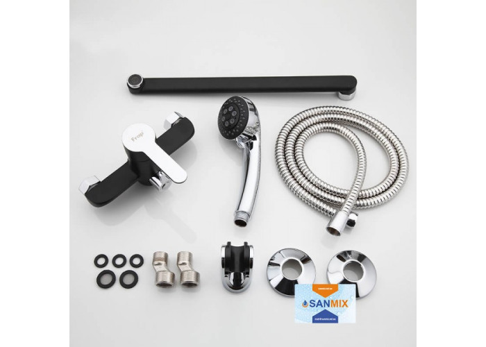 Змішувач для ванни Frap H42 F2242 латунний забарвлений в чорний колір з хромованими елементами декору. Виріб виглядає дорого, строго і помпезно. Він стане прекрасним кольоровим акцентом в кімнаті. А його корпус з мідного сплаву не боїться різких перепадів температури і іржавіння. Це дозволяє йому прослужити до десяти років.