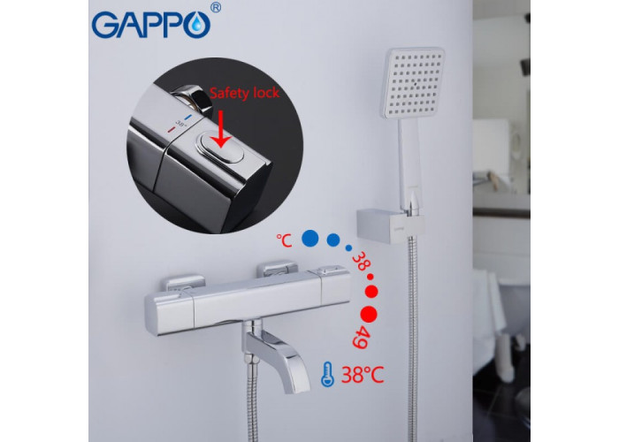 Термостатичний змішувач для ванни Gappo G3291 відрізняється першокласним дизайном і зручністю експлуатації. Прилад виготовлений з алюмінієвого сплаву високої якості з п'ятишаровим хромованим покриттям. Дана модель оснащена компактним коротким зливом, який також служить перемикачем на душову лійку.
