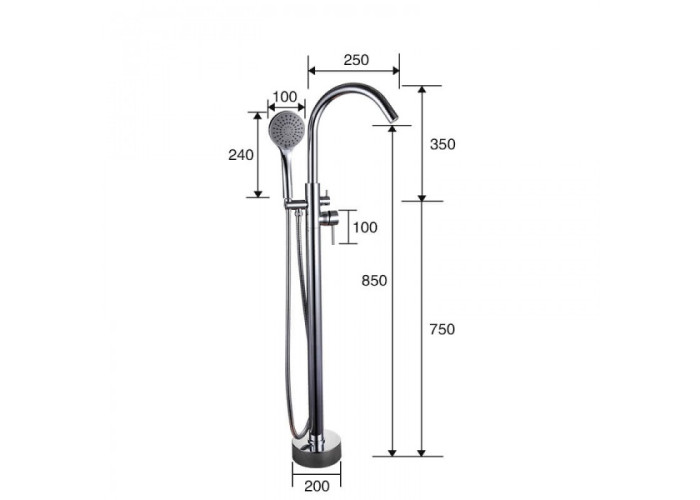 Змішувач підлогового типу Jacob G3098 - нестандартне рішення, яке перетворить ванну кімнату і значно поліпшить її дизайн. Дана модель оснащена поворотним вигнутим виливом висотою 1100 мм. Корпус виготовлений з високоякісної латуні з елегантним хромованим покриттям. Управління напором води і температурою здійснюється поворотним важелем, що знаходиться на корпусі пристосування. У цьому змішувачі встановлений надійний керамічний картридж 35мм фірми Sedal. Він забезпечує безшумну і безперебійну роботу приладу на довгі роки. На корпусі також передбачений тримач для душової лійки, яка, як і шланг йдуть в комплекті до змішувача. Ручний душ - однорежимний, має круглу форму і виконаний в тому ж стилі що і змішувач.
