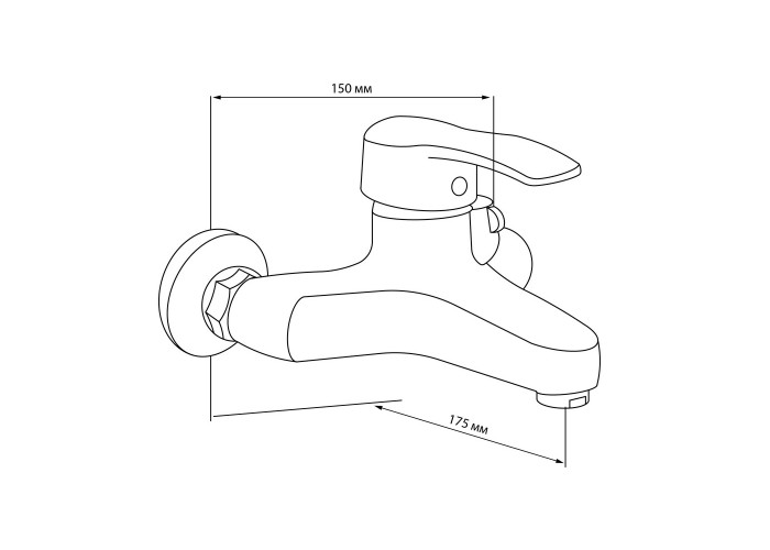 Змішувач для ванни GF (CRM)/S-03-006N з фіксованим виливом виготовлений з силуміну, укомплектований кронштейном, душовим шлангом і лійкою. Для вмикання потоку води передбачено вигнутий важіль з нанесеним маркуванням Х+Г води, для перемикання на душ - поворотний дивертор. Настінний монтаж здійснюється за допомогою кріпильних деталей, які комплектуються разом зі змішувачем. Круглі розетки приховають сліди установки на обробці.