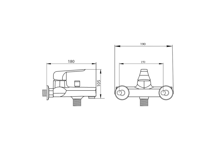 Змішувач для ванни GF (CRM)/S-12-006 з фіксованим виливом виготовлений з силуміну, укомплектований кронштейном для ручного душу, душовим шлангом і лійкою. Для вмикання потоку води передбачено важіль з нанесеними маркуванням Х+Г води та фірмовим логотипом виробника, для перемикання на душ - витяжний дивертор. Настінний монтаж здійснюється за допомогою кріпильних деталей, які комплектуються разом зі змішувачем. Круглі розетки приховають всі погрішності установки на обробці ванної кімнати.