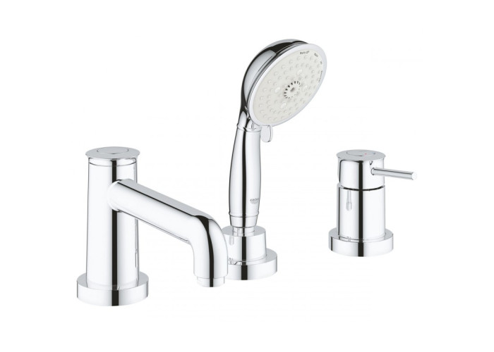 Змішувач для ванни Grohe BauClassic 2511800A має хромовану сяючу поверхню, яка стійка до утворення корозії, забруднення і стирання, що гарантує довговічність виробу. Для вмикання подачі води він обладнаний зручним важелем з руків‘ям-паличкою та нанесеним маркуванням Х+Г води, а для перемикання на ручний душ - висувною лійкою. Душовий шланг прихований з поля зору та не заважає під час купання, завдяки можливості регулювати його довжину.