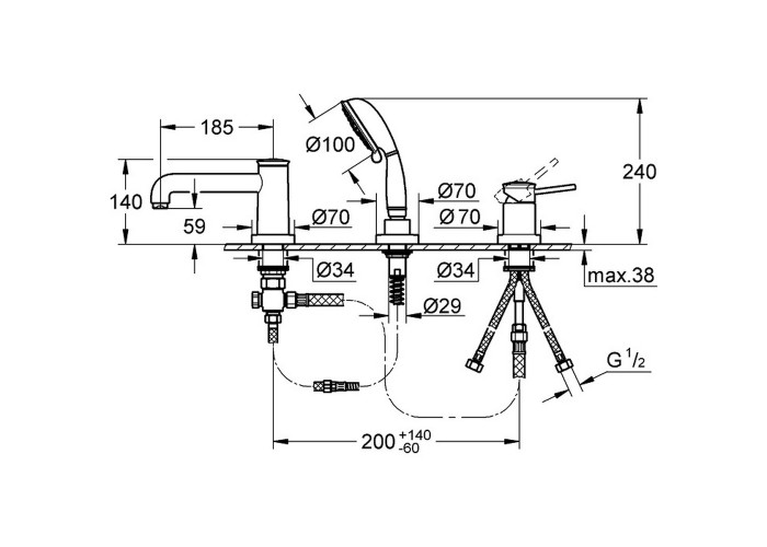 GROHE SpeedClean - запобігання утворенню вапняних відкладень. GROHE DreamSpray - оптимальний розподіл води по кожній душовій форсунці. GROHE Longlife - плавність ходу важеля. GROHE StarLight - хромоване покриття. GROHE Inner WaterGuide - запобігання нагріву поверхні лійки.