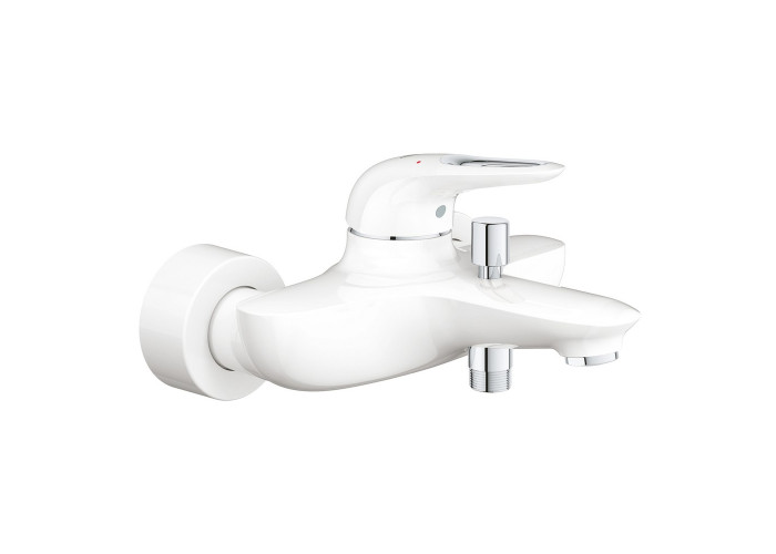 Змішувач для ванни Grohe Eurostyle 33591LS3 виконаний з латуні та має білосніжну поверхню, яка стійка до утворення корозії, забруднення і стирання. Перераховані вище характеристики виробу гарантують його довговічність. Для вмикання подачі води змішувач обладнаний зручним важелем з отвором, нанесеними фірмовим логотипом виробника и маркуванням Х+Г води, а для перемикання на душ - натискним дивертором і виходом для під‘єднання душового шланга.