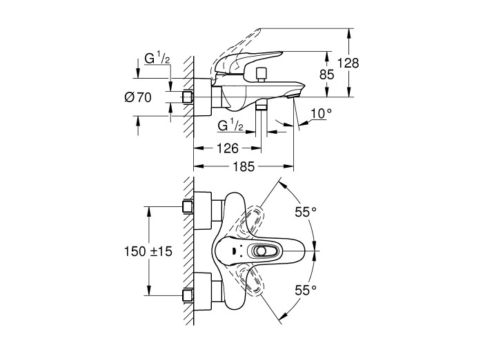 GROHE SilkMove - плавність ходу важеля. GROHE StarLight - хромоване покриття.