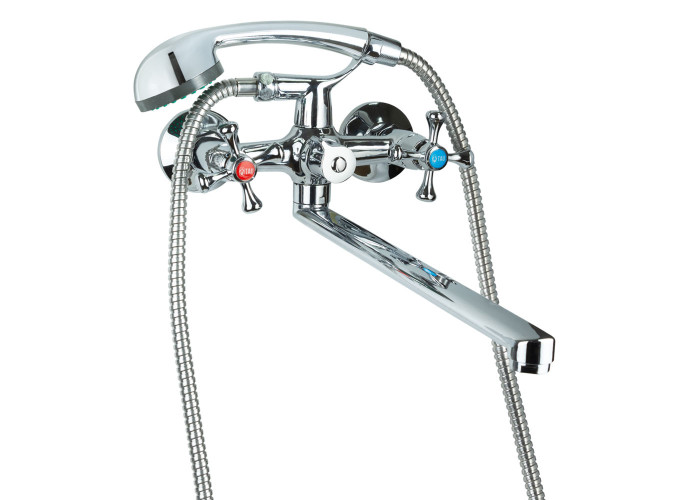 Змішувач VN 1/2" для ванни гусак прямий 350 мм дивертор вбудований картриджний TAU (VN-2C260C). Мінімальний тиск в системі водопостачання: 0.5 бар. Максимальний тиск в системі водопостачання: 10 бар. Водневий показник води (pH): 6.5-8.5. Загальна мінералізація води: не більше 1500 г/м³. Тільки для чистої води без домішок, що містять абразиви (пісок, глину, вапно тощо). Модель TAU VN-2C260C - це двохвентильний змішувач для ванної з душем. Класичний дизайн, вентилі гарячої і холодної води - хрестоподібні, декоровані заглушками червоного і синього кольору. Дивертор вбудований, картриджний. Гусак прямий, має поворот на 360°. Вилив має насадку-аератор, яка ефективно розподіляє потік води і перешкоджає попаданню в ванну дрібного сміття. Оскільки даний змішувач для ванною з довгим виливом, його вигідно встановити в санвузлі, в якому немає рукомийника. Загальні характеристики: стійкість до потьмяніння і дрібних механічних пошкоджень; латунна міцна кран-букса; легке управління; простий догляд. Змішувач для ванни поставляється з лійкою для душу, шлангом з нержавіючої сталі (150 см) і тримачем, виготовленим з цинку. Спосіб монтажу - настінний, для підключення до водопроводу використовуються ексцентрики з декоративними відбивачами. Гарантія на виріб - 12 місяців.