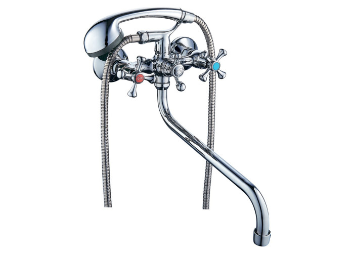 Змішувач VN 1/2" для ванни гусак вигнутий дивертор вбудований кульовий TAU (VN-5C460C). Мінімальний тиск в системі водопостачання: 0.5 бар. Максимальний тиск в системі водопостачання: 10 бар. Водневий показник води (pH): 6.5-8.5. Загальна мінералізація води: не більше 1500 г/м³. Тільки для чистої води без домішок, що містять абразиви (пісок, глину, вапно тощо). Змішувач для ванни TAU VN-5C460C є двохвентильним, має вбудований кульовий дивертор. Модель класична, вентилі холодної та гарячої води позначені заглушками відповідних кольорів, дивертор - кульовий. Вилив вигнутий з обертанням на 360 градусів. Носик оснащений сіточкою-аератором, завдяки якій в ванну не потрапляє дрібне сміття, а струмінь води розподіляється рівномірно. Даний змішувач для ванни з душем, тому в комплекті поставляється шланг з нержавіючої сталі (1,5 метра), лійка для душу і оцинкований кронштейн. Загальні характеристики: хромонікелеве покриття; кран-букса з латуні з керамічними дисками; простота обслуговування. Спосіб кріплення змішувача для ванни - настінний, тип підведення - ексцентрики. Гарантія - 12 місяців.