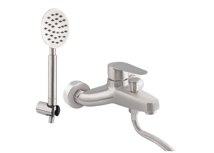 Фіксований змішувач для ванни Imperial 32-006-00 виконаний з нержавіючої сталі, що гарантує тривалий термін експлуатації. Для вмикання подачі води досить підняти важіль і повернути його в необхідний бік. Змішувач монтується на стіну над ванною за допомогою кріпильних елементів, які комплектуються разом зі змішувачем. Круглі розетки приховають похибки установки на обробці. Тримач лійки також кріпиться на стіну. Таким чином, ваші руки будуть вільні під час прийняття душу.