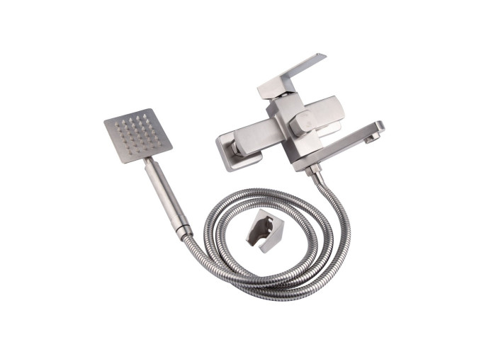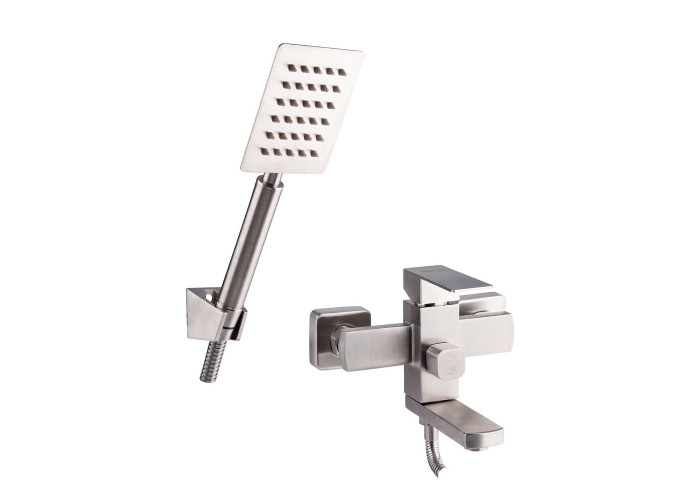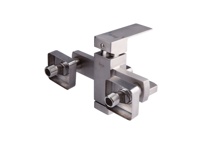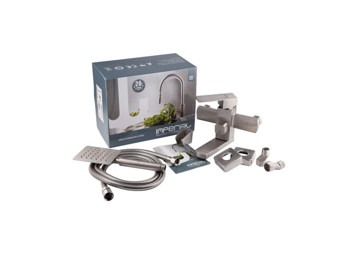Змішувач для ванни Imperial 33-006N-01 виконаний в кубічному стилі з нержавіючої сталі, що гарантує тривалий термін експлуатації. Для вмикання подачі води досить підняти важіль і повернути його в необхідний бік. Змішувач монтується на стіну над ванною за допомогою кріпильних елементів, які комплектуються разом зі змішувачем. Квадратні розетки приховають похибки установки на обробці. Тримач лійки також кріпиться на стіну. Таким чином, ваші руки будуть вільні під час прийняття душу.