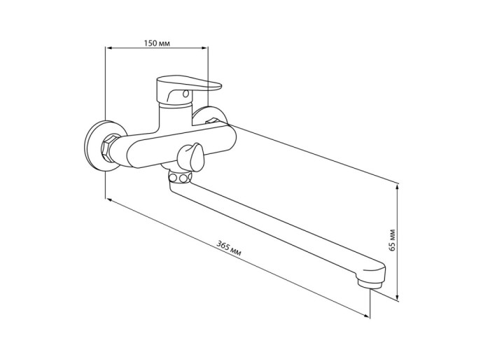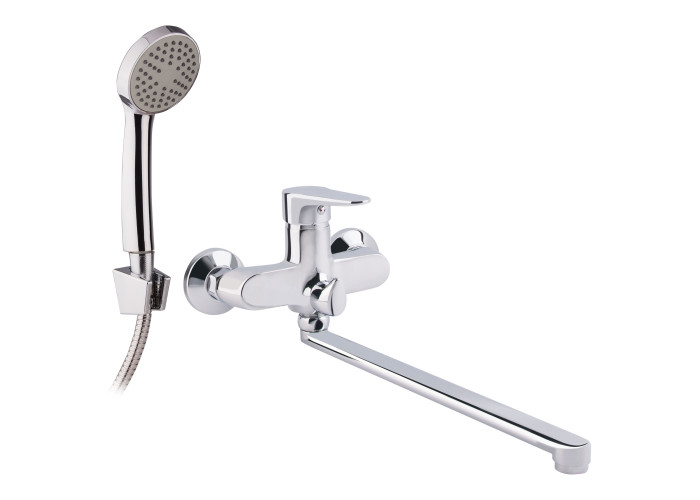 Змішувач для ванни Lidz (CRM) 14 34 005B-1 з довгим поворотним виливом виготовлений з силуміну, укомплектований кронштейном для ручного душу, душовим шлангом і лійкою. Для вмикання потоку води передбачено важіль з нанесеним маркуванням Х+Г води, для перемикання на душ - поворотний дивертор. Настінний монтаж здійснюється за допомогою кріпильних деталей, які комплектуються разом зі змішувачем. Круглі розетки приховають сліди установки на обробці.