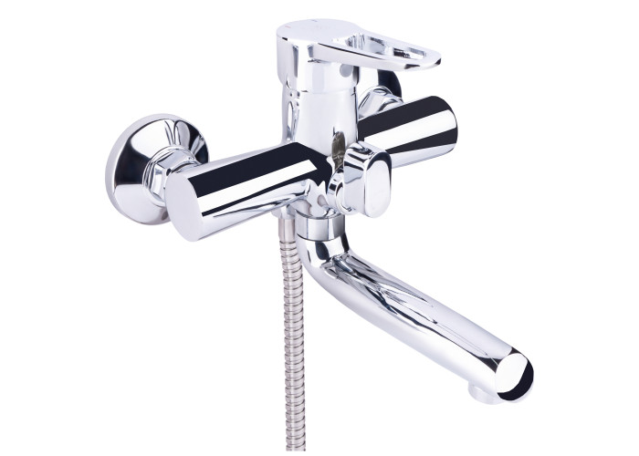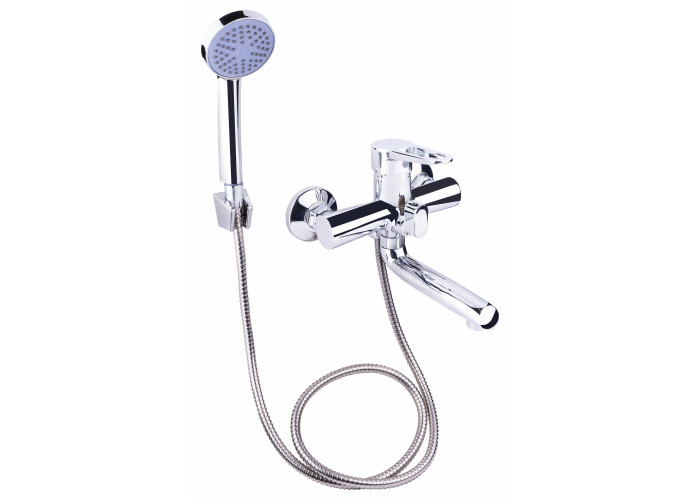 Змішувач для ванни Lidz (CRM) 14 47 006-1 New з довгим поворотним виливом виготовлено з латуні, укомплектовано кронштейном для ручного душа, душових шлангом і лійкою. Завдяки хромованому покриттю має міцну поверхню і привабливий зовнішній вигляд. Декоративні розетки приховають похибки установки на оздобленні кімнати. Напір води і її температура регулюються поворотом важеля в необхідне положення. Перемикання ванна/душ здійснюється за допомогою дивертора.
