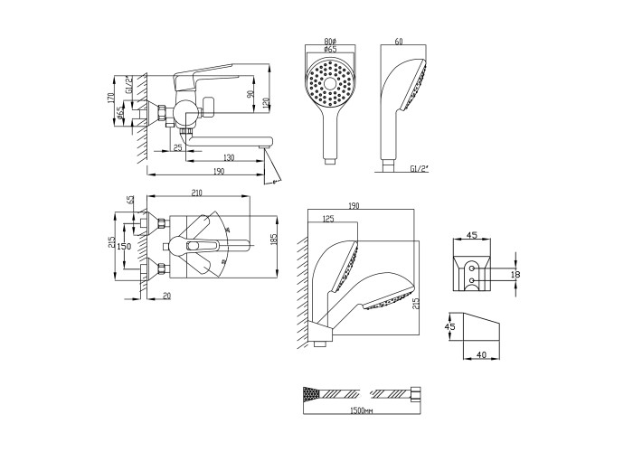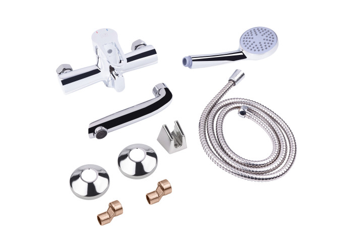 Змішувач, лійка для ручного душу, душовий шланг, тримач для ручного душу, кріплення.
