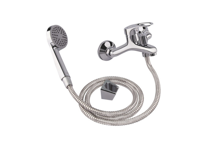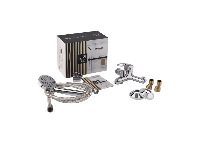 Змішувач для ванни Lidz (CRM) 16 37 006 00 виконаний в хромованому кольорі з глянсовою поверхнею з коротким фіксованим виливом. Разом з нерухомим тримачем для душу він монтується на стіну над ванною або в душі. Круглі декоративні розетки приховають всі похибки установки. Напір води і її температура регулюються поворотом важеля з отвором і нанесеним маркуванням Х + Г води в необхідне положення. Перемикання ванна/душ здійснюється поворотом дивертора.