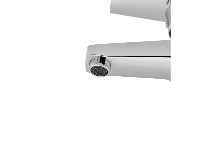 Змішувач для ванни Lidz (CRM) 40 87 006-1 має фіксований вилив та вигнуте руків‘я з нанесеним маркуванням Х+Г води. Для вмикання подачі води досить підняти та повернути її в потрібне положення. Змішувач та тримач лійки монтуються на стіну за допомогою кріпильних елементів, які є в комплекті. Круглі хромовані розетки приховають похибки установки на обробці ванної кімнати. Перемикання на ручний душ виконується поворотним дивертером.