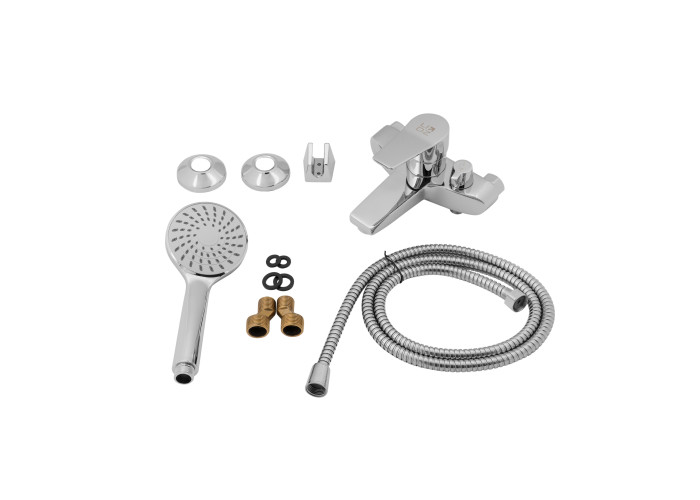 Змішувач, лійка для ручного душу, душовий шланг, кронштейн для ручного душу, кріпильні деталі.