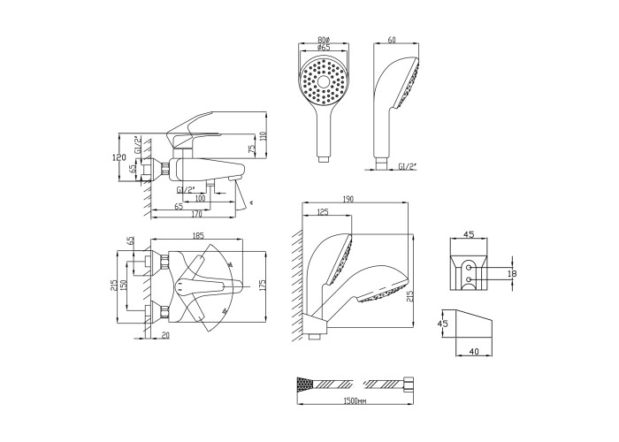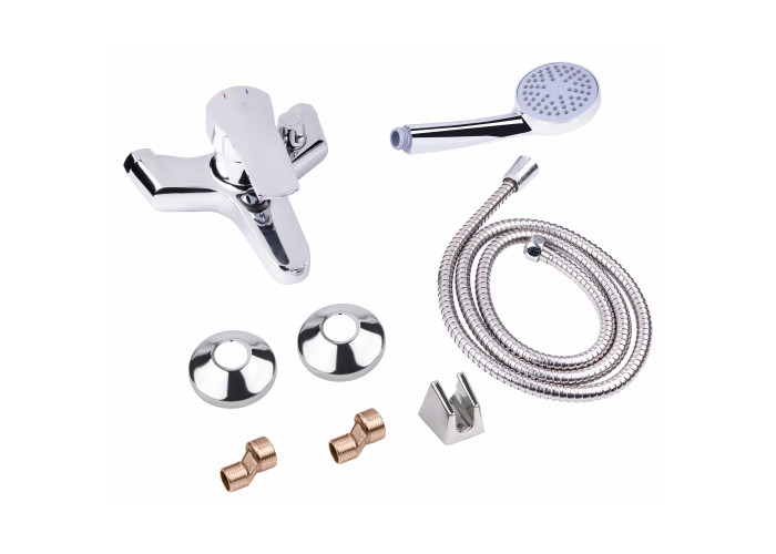 Змішувач, лійка для ручного душу, душовий шланг, тримач для ручного душу, кріплення.