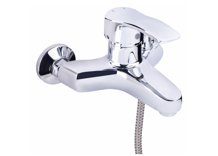 Змішувач для ванни Lidz (CRM) 41 86 006-1 New виконано в хромованому кольорі з глянцевою поверхнею з коротким фіксованим виливом. Разом з тримачем для душу він монтується на стіну над ванною або в душі. Декоративні розетки приховають всі похибки встановлення. Напір води і її температура регулюються поворотом важеля в необхідне положення. Перемикання ванна/душ виконується за допомогою дивертора.