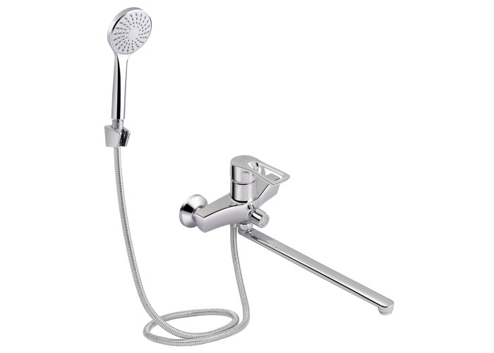 Змішувач для ванни Lidz (CRM) 44 80 005-1 New з довгим поворотним виливом виготовлено з силуміну, укомплектовано кронштейном для ручного душа, душових шлангом і лійкою. Завдяки хромованому покриттю має міцну поверхню і привабливий зовнішній вигляд. Декоративні розетки приховають похибки установки на оздобленні кімнати. Напір води і її температура регулюються поворотом важеля в необхідне положення. Перемикання ванна/душ здійснюється за допомогою дивертора.