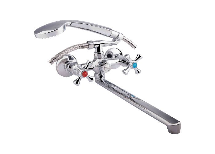 Змішувач для ванни Lidz (CRM) 75 21 140 з довгим поворотним виливом виконаний з інтегрованим шланговим під‘єднанням, укомплектований душовим шлангом і лійкою. Для вмикання потоку води передбачено два вентиля з нанесеними маркуванням Х+Г води і фірмовими логотипами виробника, для перемикання на душ - поворотний дивертор. Настінний монтаж здійснюється за допомогою кріпильних деталей, які комплектуються разом зі змішувачем. Круглі розетки приховають сліди установки на обробці.