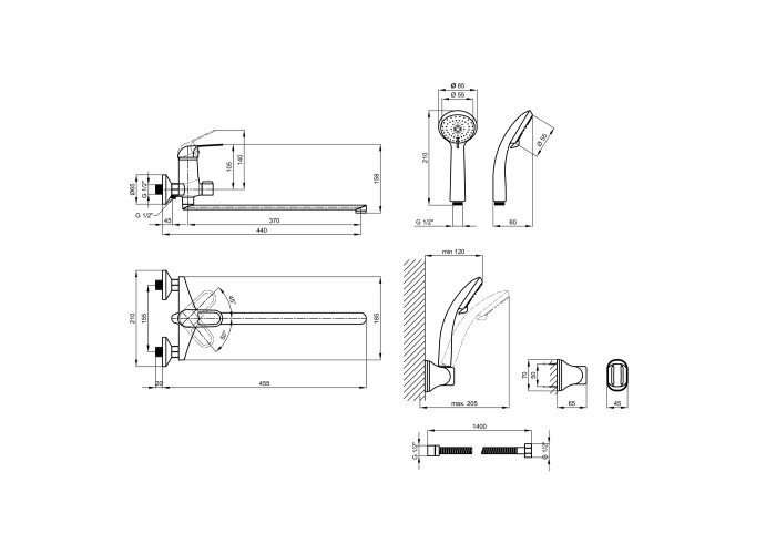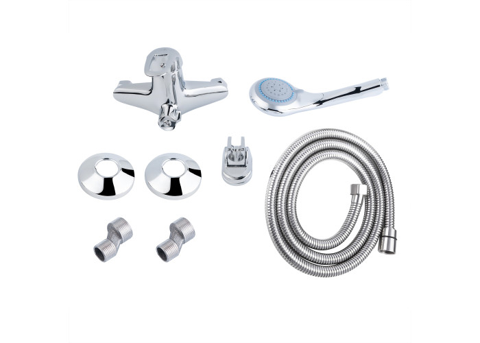 Змішувач, душовий шланг, лійка для ручного душу, кріпильні деталі.