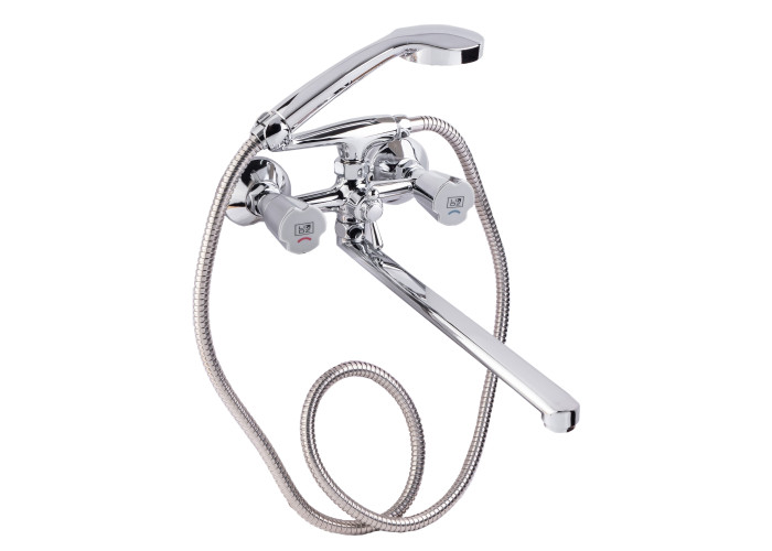Змішувач для ванни Lidz (CRM) Mix 17 143 з довгим поворотним виливом виготовлено з латуні, укомплектовано кронштейном для ручного душу, душовим шлангом і лійкою. Завдяки якісному покриттю має міцну поверхню і привабливий зовнішній вигляд. Декоративні розетки приховають похибки встановлення на оздобленні кімнати. Напір води і її температура регулюються поворотом вентелів в необхідне положення. Перемикання ванна/душ здійснюється за допомогою дивертора.