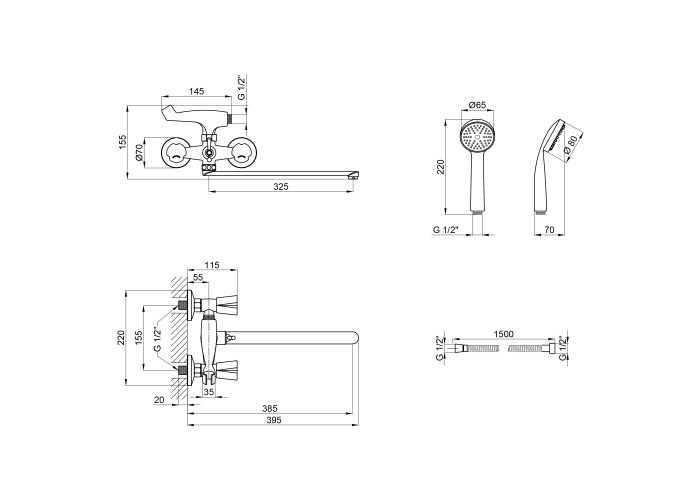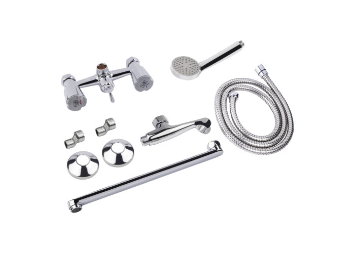 Змішувач, душовий шланг, лійка для ручного душу, кріпильні деталі.