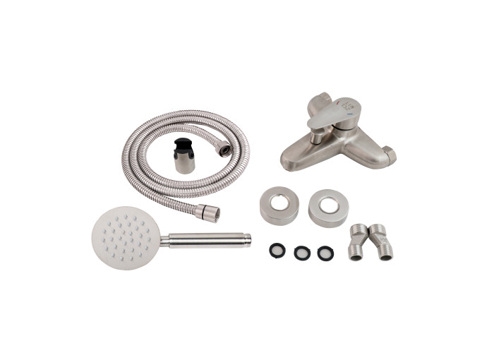 Змішувач, лійка для ручного душу, душовий шланг, кронштейн для ручного душу, кріпильні деталі.