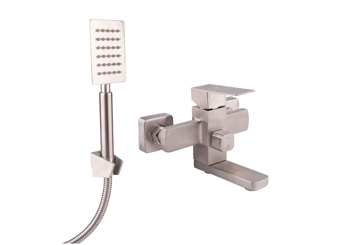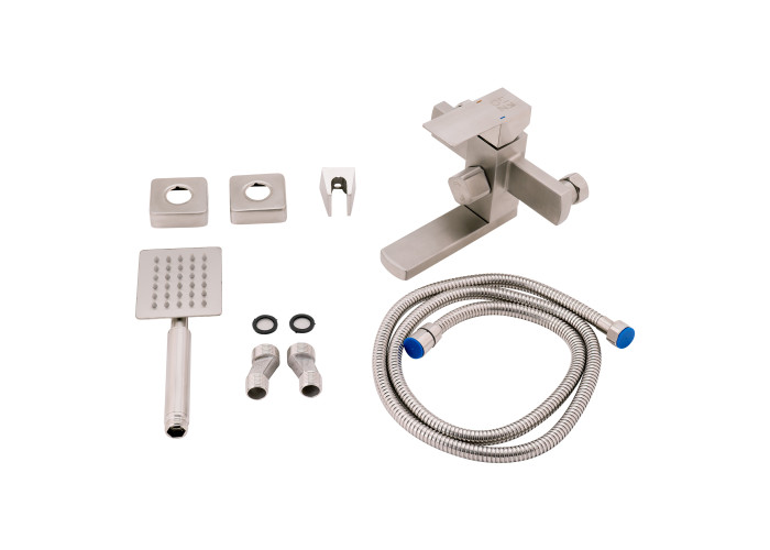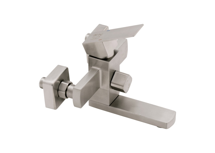 Змішувач для ванни Lidz (NKS) 10 30 006-1 виконаний в кубічному стилі з нержавіючої сталі, що гарантує тривалий термін експлуатації. Для включення подачі води досить підняти важіль і повернути його в необхідну сторону. Змішувач монтується на стіну над ванною за допомогою кріпильних елементів, які входять в комплект. Квадратні розетки приховають похибки установки на обробці. Тримач лійки кріпиться також на стіну. Таким чином, ваші руки будуть вільні під час прийняття душу.