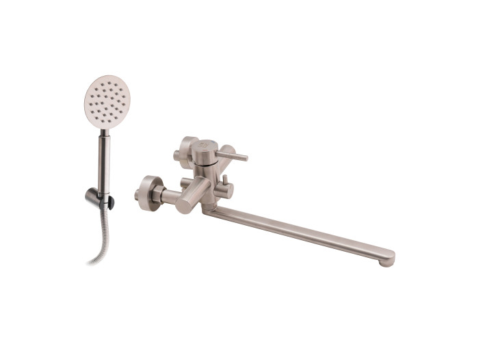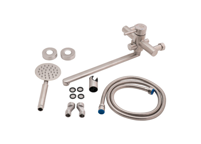 Змішувач для ванни Lidz (NKS) 12 32 005-1 виконаний з нержавіючої сталі, що гарантує тривалий термін експлуатації. Для вмикання подачі води досить підняти важіль і повернути його в необхідний бік. Змішувач монтується на стіну над ванною за допомогою кріпильних елементів, які комплектуються разом зі змішувачем. Круглі розетки приховають похибки установки на обробці. Тримач лійки також кріпиться на стіну. Таким чином, ваші руки будуть вільні під час прийняття душу.