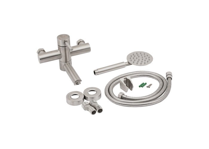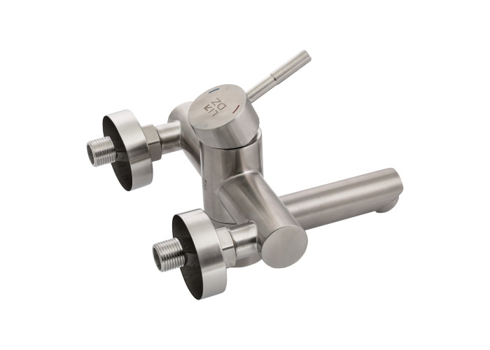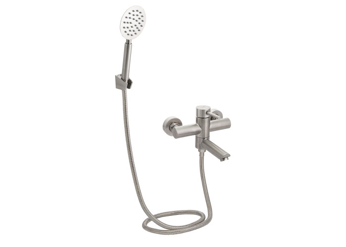 Змішувач для ванни Lidz (NKS) 12 32 006-1 виконаний з нержавіючої сталі, що гарантує тривалий термін експлуатації. Для вмикання подачі води досить підняти важіль і повернути його в необхідний бік. Змішувач монтується на стіну над ванною за допомогою кріпильних елементів, які комплектуються разом зі змішувачем. Круглі розетки приховають похибки установки на обробці. Тримач лійки також кріпиться на стіну. Таким чином, ваші руки будуть вільні під час прийняття душу.