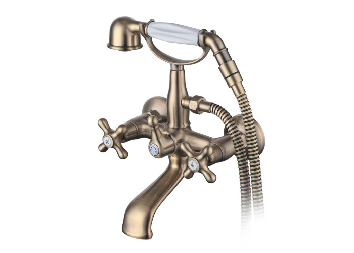 Змішувач BRENTA 1/2" для ванни, вилив поворотний, дивертор вбудований картриджний CORSO (FE-2C152K) (9679204), кран-букса 1/2" латунна з керамічними дисками. Покриття бронза. Кріплення на ексцентрик з латуні. Шланг для душу (нержавіюча сталь, 1500 мм), лійка для душу (металева, 1 режим). Вага 2500 г, 200 годин в NSS (тест в нейтрально-сольовій камері). Виготовлений з латуні.