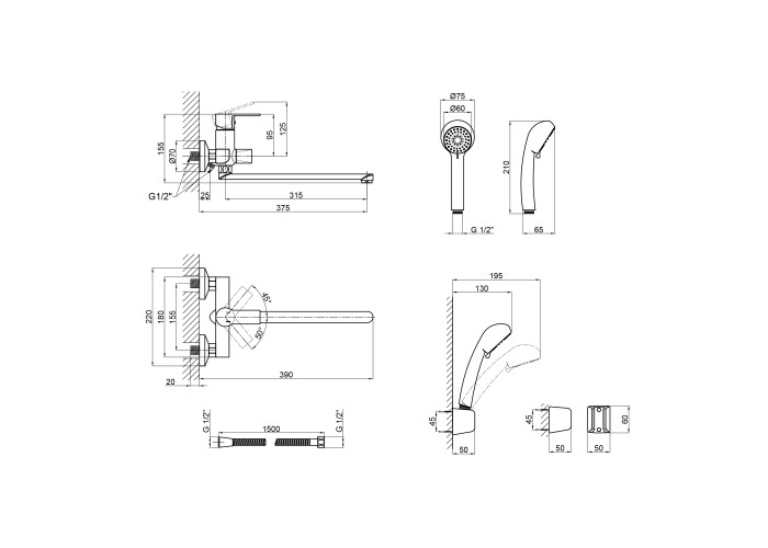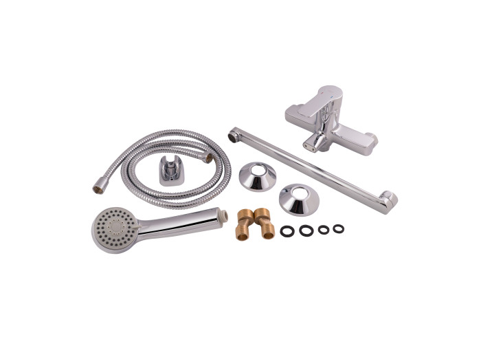 Змішувач, лійка для ручного душу, душовий шланг, кронштейн, кріпильні деталі.
