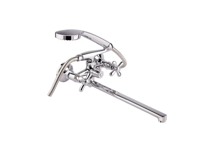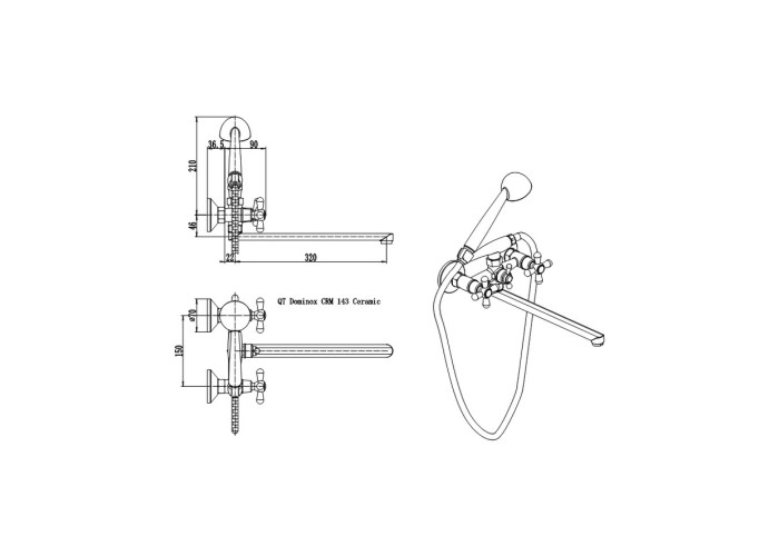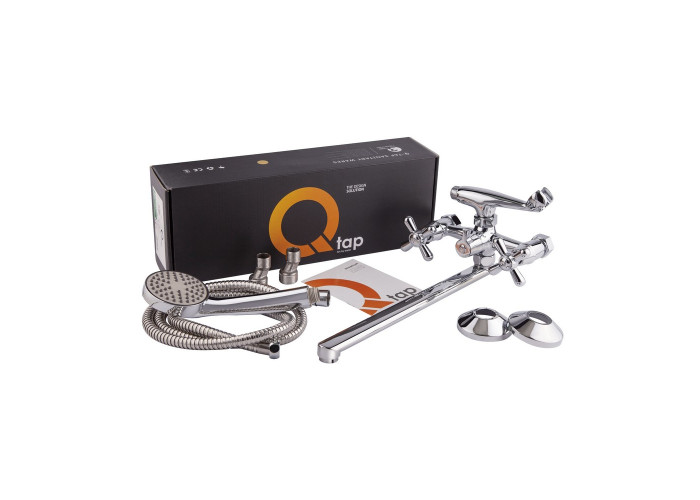 Змішувач для ванни Qtap Dominox CRM 140 з інтегрованим шланговим під‘єднанням виготовлений з міцної та зносостійкої латуні з рівномірним хромованим покриттям, завдяки якому виріб має привабливий зовнішній вигляд та більш стійкий до механічних пошкоджень. У комплекті є лійка та душовий шланг. Подача води здійснюється за допомогою зручних вентилів з маркуванням холодної та гарячої води, а перемикання на душовий режим - поворотним дивертором.