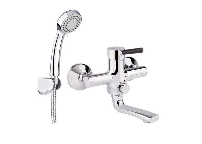 Змішувач, лійка для ручного душу, душовий шланг, кронштейн для ручного душу, кріпильні деталі.
