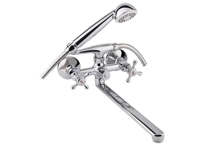 Змішувач для ванни Qtap Mayfair CRM 140 з інтегрованим шланговим під‘єднанням виготовлений з міцної та зносостійкої латуні з рівномірним хромованим покриттям золотого кольору, завдяки якому виріб має привабливий зовнішній вигляд й більш стійкий до механічних пошкоджень. У комплекті є лійка та душовий шланг. Подача води здійснюється за допомогою зручних вентилів з маркуванням холодної та гарячої води, а перемикання на душовий режим - поворотним дивертором.