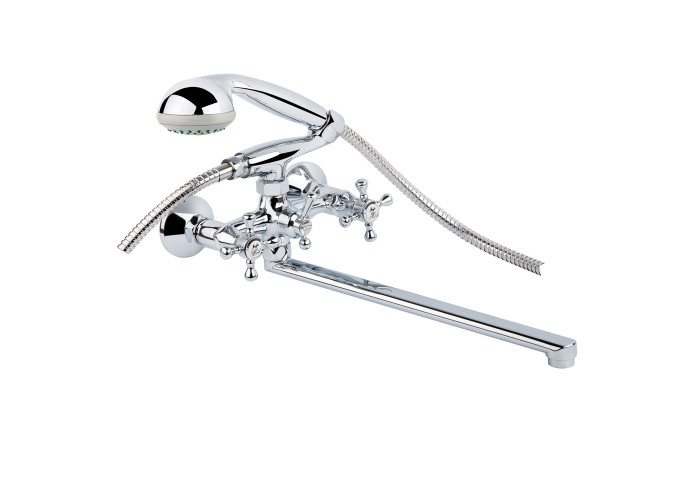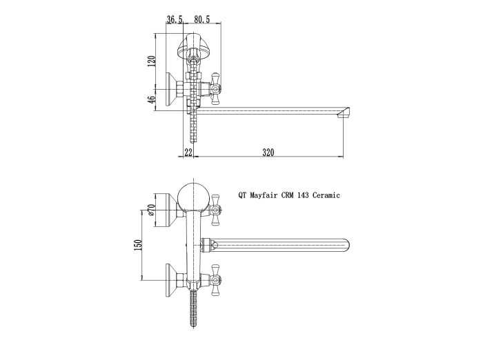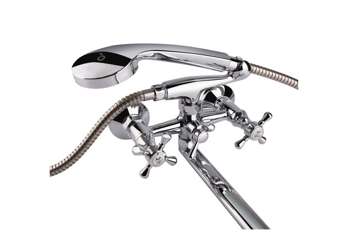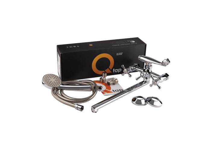 Змішувач для ванни Qtap Mayfair CRM 143 з інтегрованим шланговим під‘єднанням виготовлений з міцної та зносостійкої латуні з рівномірним хромованим покриттям золотого кольору, завдяки якому виріб має привабливий зовнішній вигляд й більш стійкий до механічних пошкоджень. У комплекті є лійка та душовий шланг. Подача води здійснюється за допомогою зручних вентилів з маркуванням холодної та гарячої води, а перемикання на душовий режим - поворотним дивертором.