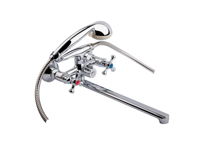 Змішувач для ванни SW Armatura 140 з інтегрованим шланговим приєднанням виготовлений з якісного силуміну з рівномірним хромованим покриттям. У комплекті є зручна лійка для ручного душу та душовий шланг. Управління потоком здійснюється двома вентилями з маркуванням холодної та гарячої води, а перемикання на душовий режим - поворотним дивертором. Декоративні розетки допоможуть приховати вади монтажу.