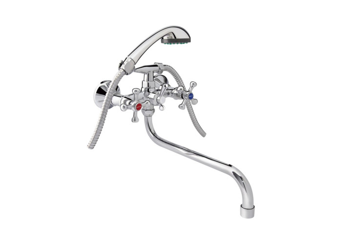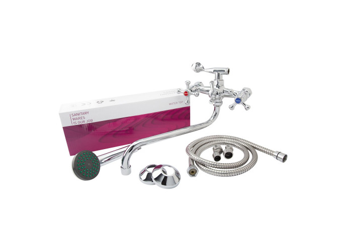 Змішувач для ванни SW Armatura 143S з інтегрованим шланговим приєднанням виготовлений з якісного силуміну з рівномірним хромованим покриттям. У комплекті є зручна лійка для ручного душу та душовий шланг. Управління потоком здійснюється двома вентилями з маркуванням холодної та гарячої води, а перемикання на душовий режим - поворотним дивертором. Декоративні розетки допоможуть приховати вади монтажу.