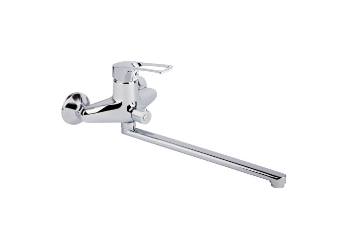 Змішувач для ванни SW G-Ferro Hansberg 005 NEW з поворотним виливом виготовлений з якісного силуміну з рівномірним хромованим покриттям. У комплекті є лійка для ручного душу, кронштейн і душовий шланг. Управління потоком здійснюється зручним важелем з маркуванням холодної і гарячої води, а перемикання на душовий режим - поворотним дивертором. Декоративні розетки допоможуть приховати вади монтажу.