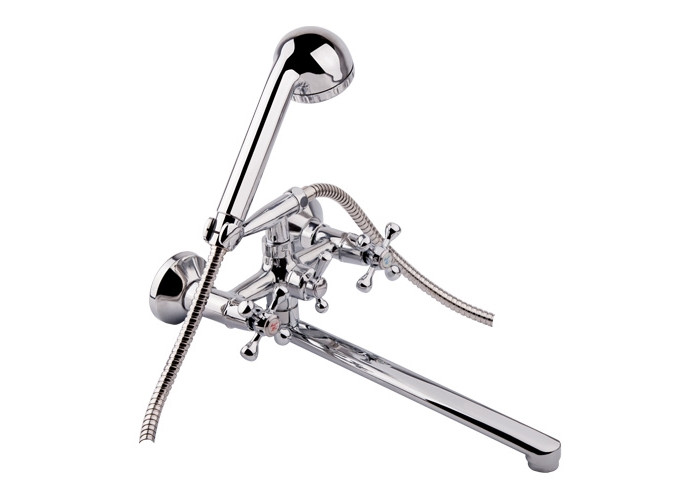 Змішувач для ванни SW Mayfair EC 143 з інтегрованим шланговим приєднанням виготовлений з якісного силуміну з рівномірним хромованим покриттям. У комплекті є зручна лійка для ручного душу та душовий шланг. Управління потоком здійснюється двома вентилями з маркуванням холодної та гарячої води, а перемикання на душовий режим - поворотним дивертором. Декоративні розетки допоможуть приховати вади монтажу.