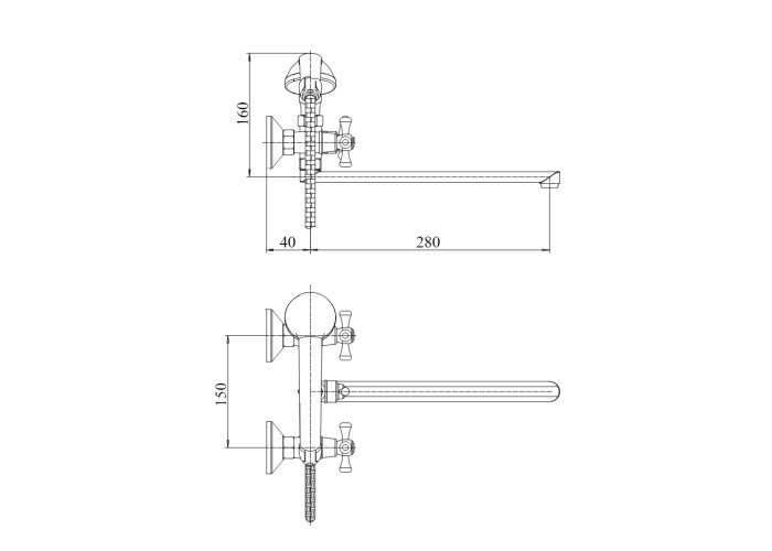 Змішувач для ванни SW Mayfair EC 146 з інтегрованим шланговим приєднанням виготовлений з якісної латуні з рівномірним хромованим покриттям. У комплекті є зручна лійка для ручного душу та душовий шланг. Управління потоком здійснюється двома вентилями з маркуванням холодної та гарячої води, а перемикання на душовий режим - поворотним дивертором. Декоративні розетки допоможуть приховати вади монтажу.
