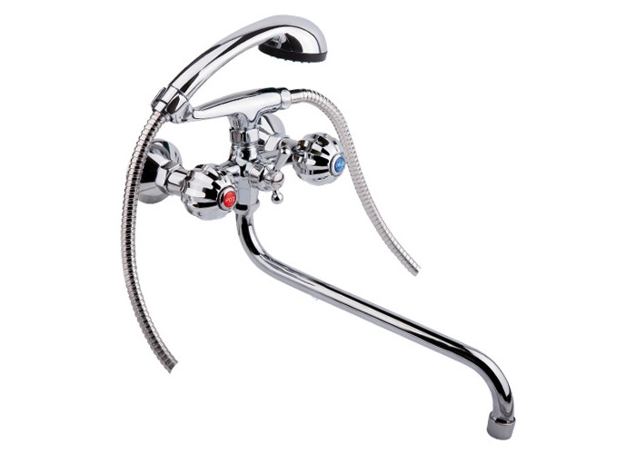 Змішувач для ванни SW Olympic 1430S з інтегрованим шланговим приєднанням виготовлений з якісного силуміну з рівномірним хромованим покриттям. У комплекті є зручна лійка для ручного душу та душовий шланг. Управління потоком здійснюється двома вентилями з маркуванням холодної та гарячої води, а перемикання на душовий режим - поворотним дивертором. Декоративні розетки допоможуть приховати вади монтажу.