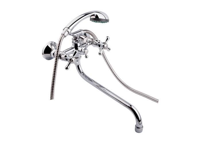 Змішувач для ванни SW Olympic 1432S з інтегрованим шланговим приєднанням виготовлений з якісного силуміну з рівномірним хромованим покриттям. У комплекті є зручна лійка для ручного душу та душовий шланг. Управління потоком здійснюється двома вентилями з маркуванням холодної та гарячої води, а перемикання на душовий режим - поворотним дивертором. Декоративні розетки допоможуть приховати вади монтажу.
