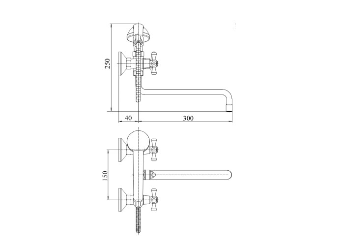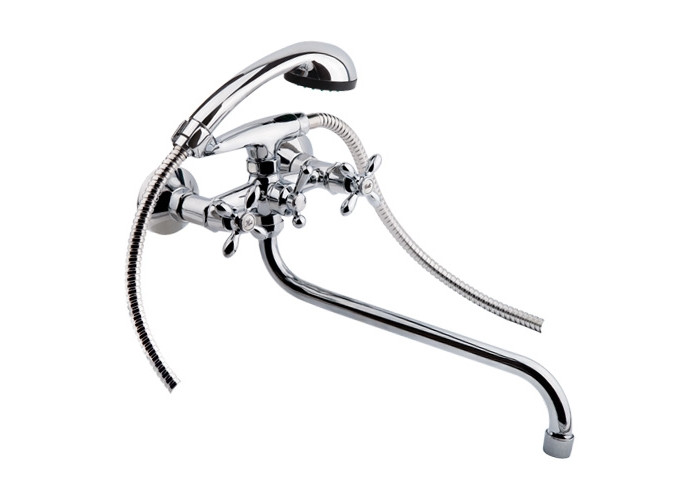 Змішувач для ванни SW Villa 143-06 з інтегрованим шланговим приєднанням виготовлений з якісного силуміну з рівномірним хромованим покриттям. У комплекті є зручна лійка для ручного душу та душовий шланг. Управління потоком здійснюється двома вентилями з маркуванням холодної та гарячої води, а перемикання на душовий режим - поворотним дивертором. Декоративні розетки допоможуть приховати вади монтажу.