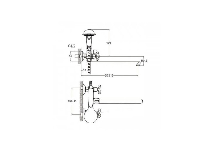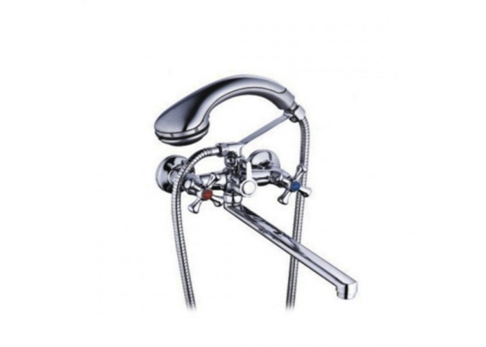 Змішувач для ванни Wezer DML7-B827 оснащений кронштейном для лійки, яка кріпиться до виробу за допомогою накидної гайки. Така особливість конструкції дозволяє встановлювати виріб на праву або ліву сторону в залежності від розташування в ванній кімнаті. А стандартні виходи підключення роблять його універсальним. Щоб коригувати відстань між точками підключення в межах 2 см, в комплекті поставляються ексцентрики.